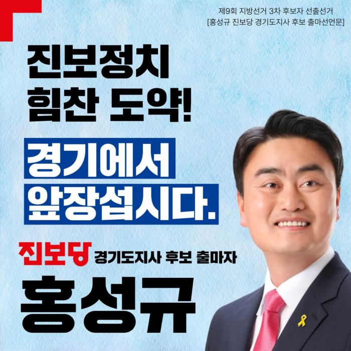 진보당 경기도당(위원장 김익영)은 9월 30일, 선거관리위원회 명의 공고를 통해 내년 지방선거 경기도지사 후보로 홍성규 중앙당 수석대변인을 확정했다고 발표했다.