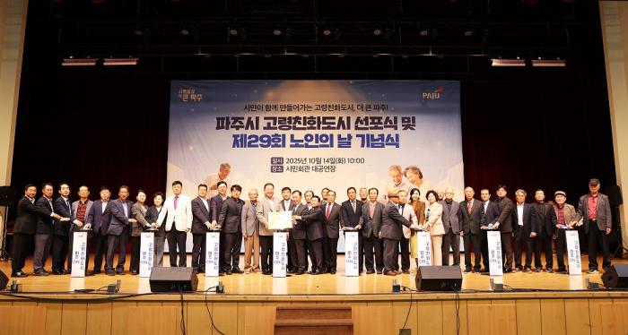 파주시는 지난 14일 파주시민회관 대공연장에서 ‘제29회 노인의 날 기념행사 및 세계보건기구(WHO) 인증 고령친화도시 선포식’을 성황리에 개최하고, 고령사회에 대응하는 파주시 복지정책 방향과 세대 간 공감의 문화를 확산하기 위한 뜻깊은 자리를 마련했다.