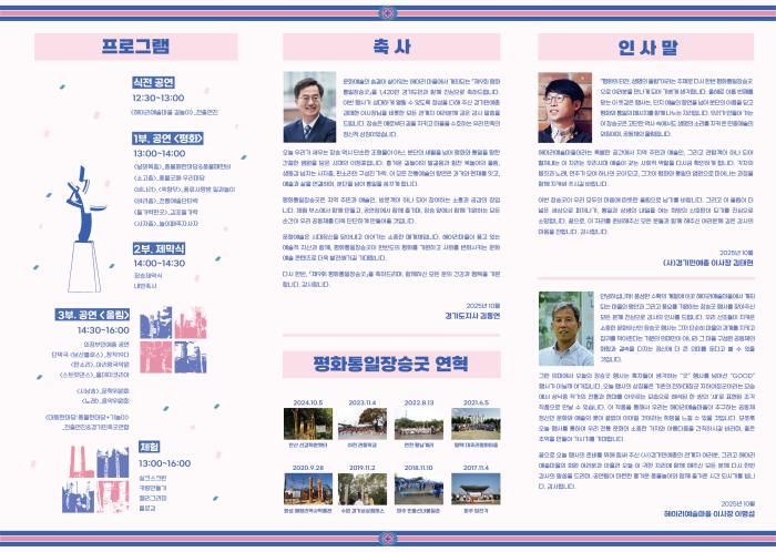 경기민예총 김태현 이사장은 “이번 평화통일장승굿은 단순한 예술 행사를 넘어, 지역민과 예술인이 함께 만드는 평화의 제의이자 시대정신을 담은 문화적 실천이며 본 행사를 통해 예술을 통한 평화·통일 메시지를 확산하여 문화예술 담론의 확장과 사회적 역할을 제고 함으로써 생명, 안전, 평화, 통일 등 시대정신 함께 나누는데 그 의미가 있다”고 힘주어 말하며 경기도민들의 많은 관심과 참여를 기대한다고 밝혔다.