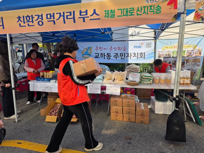 파주시 교하동주민자치회(회장 박용호)는 지난 11월 1일 서울시 성북구 동선동 성신여대앞 오거리에서 열린 ‘동선나누장’ 행사에 친환경 먹거리 장터 운영으로 참여했다.