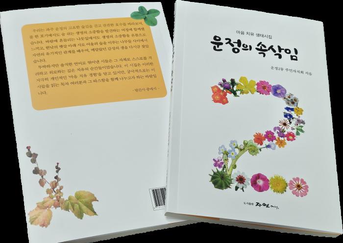 마음 치유 생태시집 『운정의 속삭임』은 11월 셋째 주 수요일에 예정된 ‘운정2동 정기회의’와 12월 6일 예정인 ‘운정2동 가족열린음악회’에서 무료로 배포할 예정이다.