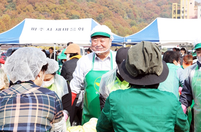 파주시새마을회는 지난 6일 탄현 통일동산 주차장에서 이웃사랑 실천을 위한 ‘사랑의 김장 담그기’ 행사를 성황리에 개최했다고 밝혔다.