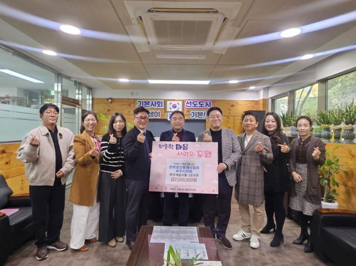 최기명 한국공인중개사협회 파주시지회장은 “지역에서 받은 사랑을 다시 지역사회에 환원하고 싶다”라며, “앞으로도 꾸준히 나눔 활동에 참여하겠다”라고 전했다.