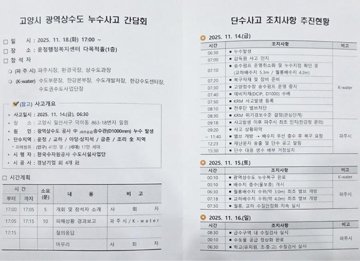 이번 간담회는 단수 피해로 불편을 겪은 시민들과 파주시·수자원공사가 사고 대응 문제점을 짚고 보상과 재발 방지책 마련을 위한 민·관 첫 공식 소통 자리였다.