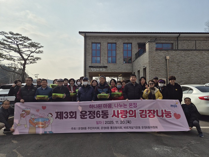 김찬주 운정6동 주민자치회장은 “주민들이 한뜻으로 참여해 정성껏 준비한 김장이 이웃들에게 힘이 되길 바란다”라며, “앞으로도 지역 나눔 문화를 확산하는 데 주민자치회가 지속적으로 역할을 하겠다”라고 말했다.