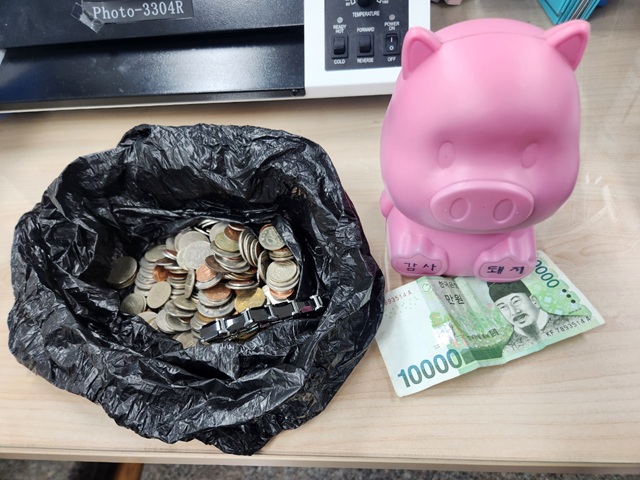 지난 5일 오후, 한 익명의 기부자가 파주시 금촌1동 행정복지센터에 동전이 들어 있는 돼지저금통과 검은 봉지를 민원대에 놓고 조용히 자리를 떠났다.