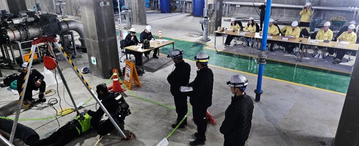 훈련은 ▲밀폐공간 내 작업자 의식 저하 상황을 가정한 상황전파 및 초기보고 ▲위험요인 파악과 긴급구조 요청 ▲구조대 도착 전 응급조치 및 현장 통제 ▲환기 장치 및 가스농도 측정 장비 활용 ▲사고 원인 분석 및 사후조치 절차 점검 순으로 진행됐다.
