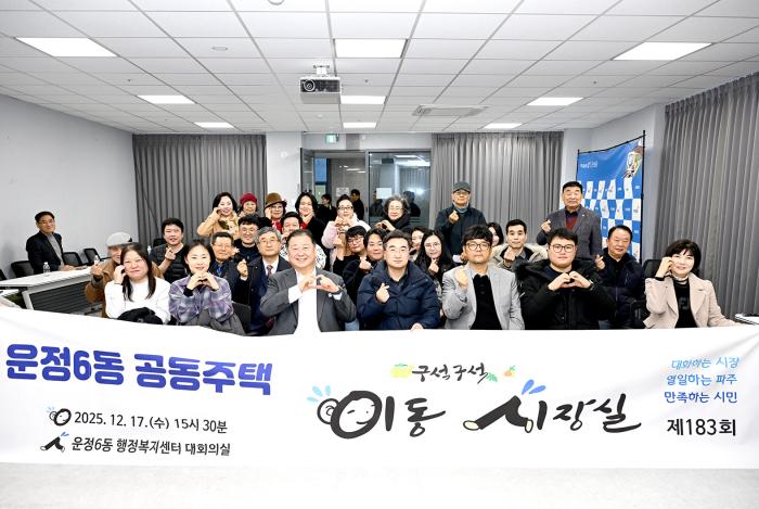 파주시는 지난 17일 운정6동 행정복지센터 대회의실에서 ‘제183회 이동시장실’을 개최하고, 주민들을 직접 만나 지역 현안을 논의하고 민원을 청취했다고 밝혔다.