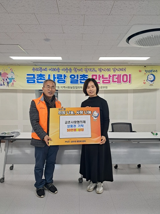파주시 금촌1동은 지역사회보장협의체(금촌사랑협의체)가 연말을 맞아 저소득 취약계층을 지원하기 위해 50만 원 상당의 상품권을 기탁했다고 밝혔다.