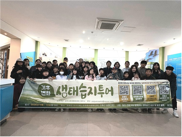 ‘기후변화 생태습지 투어’는 민간인 출입통제선 구간 외에도 파주의 주요 생태 거점을 중심으로 모두 5회 운영됐다. 11월 15일에는 가족 단위 참여자를 대상으로 공릉천에서 겨울철새 관찰 활동을 진행해 철새 이동과 생물 다양성의 중요성을 체감하는 시간을 마련했다.