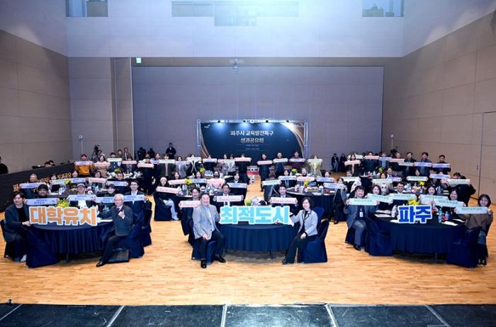 이번 성과공유회는 교육발전특구 시범지역 선정 이후 파주시가 추진해 온 3대 전략, 32개 세부사업의 성과를 종합적으로 돌아보고, 지속가능한 지역 교육 생태계 조성을 위한 협력 기반을 강화하기 위해 마련됐다. 행사에는 교육발전위원회, 대학유치 자문위원, 파주시 학부모 분야 ‘교육 소통 거버넌스’ 등 관계자 약 100명이 참석했다.