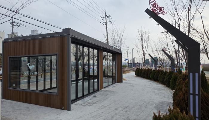 많은 주민들이 매일 찾는 문산천 노을길 명소에 자리한 이 쉼터는 사물인터넷(IoT) 기술을 접목해 사계절 이용 가능한 주민 편의시설과 기후재난 대응에 필요한 기능들을 복합화한 것이 특징이다.