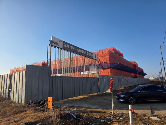 파주시 운정신도시 3지구에 건설 중이던 교하 다목적 체육관 공사가 시공업체 부도로 중단된 가운데, 파주시가 1월 중 계약 해제 후 3월 재시공에 들어가 2026년 하반기 준공을 목표로 하고 있다.