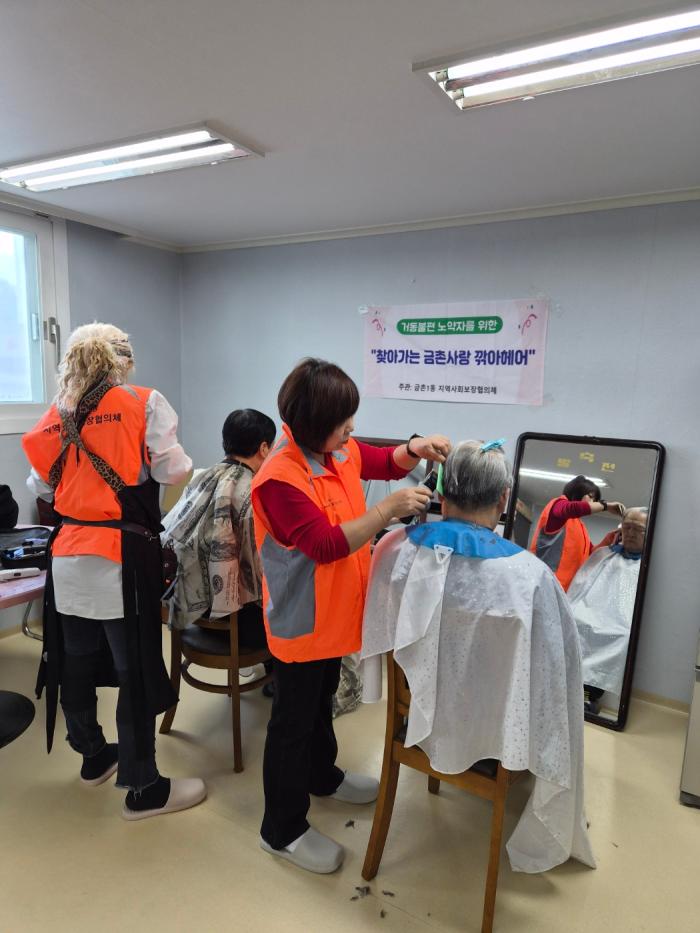 이번 행사는 거동이 불편하거나 경제적 어려움으로 미용 서비스를 이용하기 힘든 어르신들의 위생 관리와 정서적 안정을 돕기 위해 마련됐다. 이날 재능봉사자 유지연, 송현아 씨와 금촌사랑협의체 위원들이 직접 참여해 따뜻한 나눔을 실천했다.