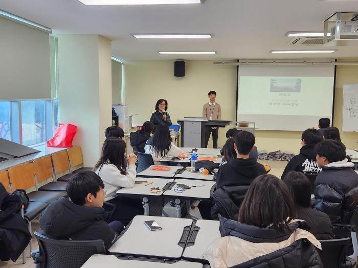 ◇ 제주서 펼쳐진 글로벌 리더십 현장 연수 글로벌 리더십 아카데미 심화과정에 참여한 중·고등학생 16명은 지난 1월 20일부터 23일까지 3박 4일간 제주 국립국제교육원에서 현장 연수를 가졌다. 이번 연수는 외국어 기반 글로벌 시민 교육과 제주 자연 자원을 활용한 환경 보존 탐방, 협업 중심 과제 해결 프로그램으로 구성되어 세계 시민으로서의 자질을 기르는 기회가 됐다.