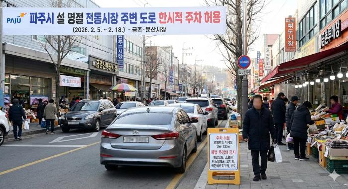 이번 한시적 주차 허용은 설 명절 기간 전통시장을 찾는 시민들의 주차 불편을 해소하고 원활한 시장 이용을 지원하기 위해 추진되며, 금촌시장과 문산시장 등 전통시장 2개소를 대상으로 2월 5일부터 2월 18일까지 14일간 운영된다.