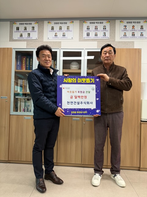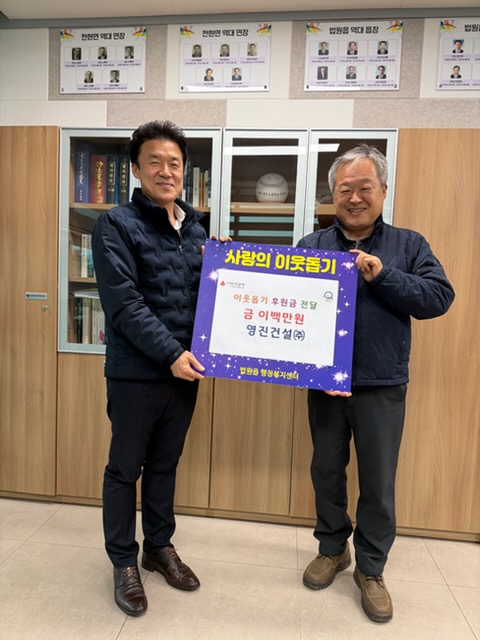 이번 후원은 영진건설㈜이 200만 원, 천연건설㈜이 100만 원을 각각 기탁한 것으로, 전달된 후원금은 설 명절을 앞두고 경제적 어려움을 겪는 저소득 가구와 취약계층을 지원하는 데 사용될 예정이다.
