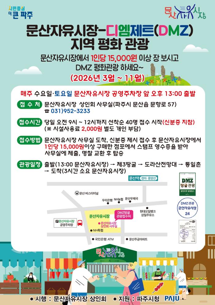 문산자유시장 상인회(회장 주관)와 파주시가 협력하여 추진하는 이번 사업은 장기화된 경기 침체 속에서 지역 상권에 활력을 불어넣고, 파주만의 고유한 자산인 DMZ 관광을 대중화하기 위해 마련되었다.