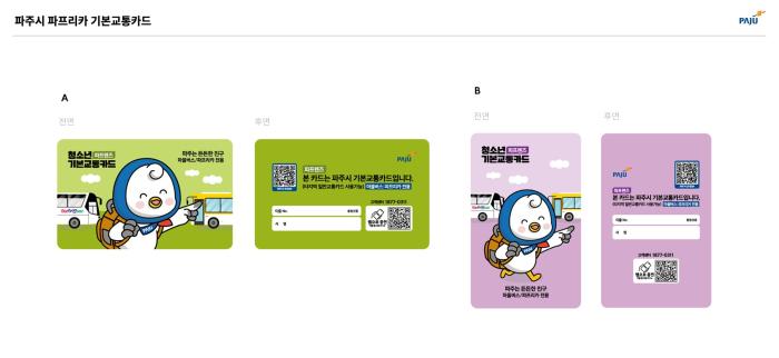 파주시는 청소년들이 이동 목적에 따라 교통비 지원을 효율적으로 활용할 수 있도록 수도권 전반 이동(지하철, 지티엑스(GTX), (광역)버스 등)은 기존 경기도 지원사업을 우선 활용하고, 통학 중심 이동(마을버스·파프리카 다빈도 이용) 시 경기도 지원금 소진 이후 파주시 전용 카드로 추가 지원을 받는 방식을 안내할 계획이다.