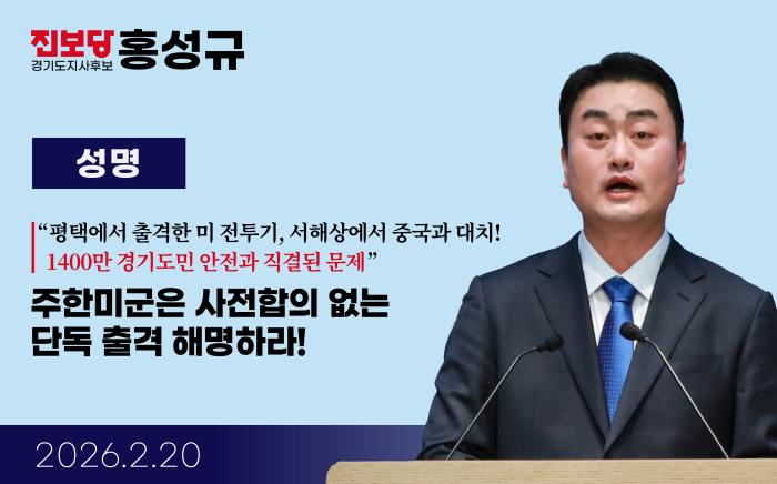 홍성규 진보당 경기도지사 후보는 20일 성명을 내고, "평택에서 출격한 미군 전투기와 중국 전투기의 대치,
