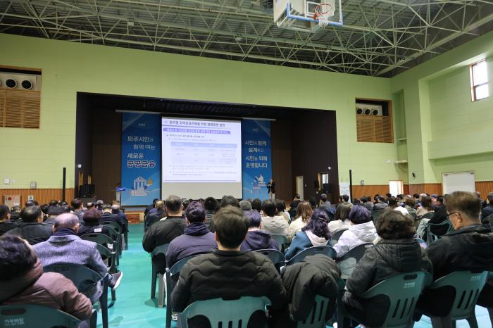 파주시는 3월 6일 오후 금촌다목적체육관 2층에서 지역 자금의 역외 유출을 줄이고 지역경제의 선순환 구조를 구축하기 위한 「파주형 지역공공은행 시민설명회」를 개최했다.
