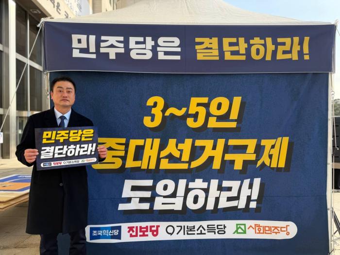 앞서 진보당을 비롯해 조국혁신당, 기본소득당, 사회민주당 등 진보개혁 야4당은 지난 9일 국회 본청 앞에서 ‘정치개혁 광장 출범식’을 열고 무기한 천막농성에 돌입했다. 이들 정당은 기초의원 2인 선거구 폐지와 3~5인 중대선거구제 도입, 연동형 비례대표제와 비례대표 정수 확대, 결선투표제 도입 등을 주요 정치개혁 과제로 제시하고 있다.
