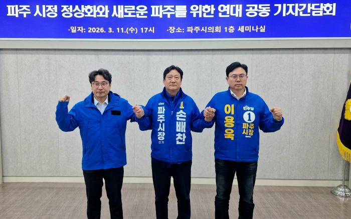 지난 11일 오후, 손배찬·이용욱 예비후보와 조성환 출마예정자는 공동 기자회견을 열고 ‘새로운 파주를 위한 연대’ 출범을 선언. 이들은 회견문에서 김경일 시장의 시정을 ‘함량 미달’과 ‘부도덕’으로 규정하며 맹비난을 쏟아냈다.