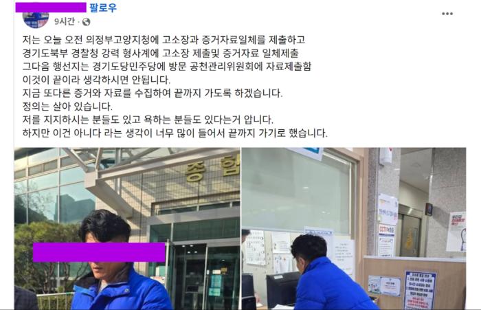 | ▲ 허위사실 유포 혐의로 선관위에 이의신청이 접수되자, 김모 씨가 답변서를 준비하며 추가적인 공익제보를 요청하고 있는 게시물이다. |
