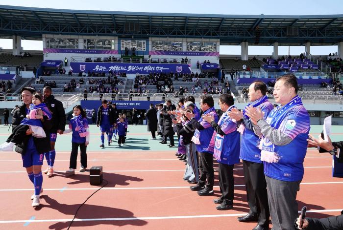 경기 전 열린 개막식에서 김경일 파주시장은 “오늘이 오길 정말 많이 기다렸다. 파주스타디움이 오늘처럼 북적이기를 바라왔다”며 “축구에 대한 시민 여러분의 뜨거운 열기를 마주하니 큰 자부심을 느낀다”고 말했다. 이어 “파주 프런티어FC가 프런티어라는 이름처럼 개척자의 정신으로 기량을 마음껏 펼쳐 시민과 팬들에게 자부심과 행복을 선사하길 기대한다”고 밝혔다.
