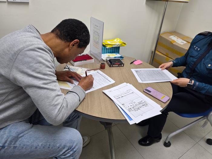 | ▲파주경찰서를 찾아 서류를 작성하고 있는 신윤복씨 ⓒ사진 하효종 기자 |