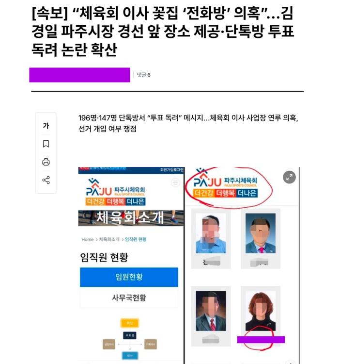 최근 파주지역의 한 매체가 보도한 ‘파주체육회 이사 선거 개입 의혹’과 관련하여, 당사자인 B 씨(금촌 소재 카페 운영)가 “익명의 제보를 빌미로 한 명백한 왜곡 보도이자 인격 말살”이라며 정면 반박에 나섰다.