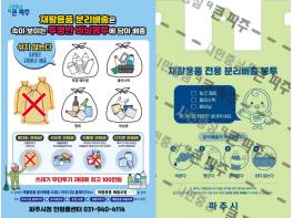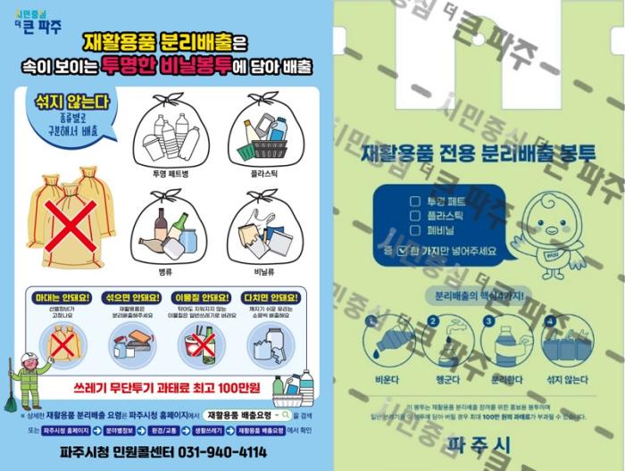 심재우 자원순환과장은 “이번 전용 봉투 배부는 단순히 쓰레기를 버린다는 개념을 넘어, 시민 여러분께서 자원순환에 직접 참여한다는 인식을 확산하기 위해 마련된 것”이라며 “재활용품은 재활용품끼리 배출하는 올바른 분리배출 문화를 정착시키는 데 목적이 있다”라고 말했다.