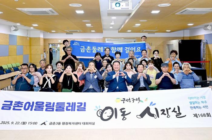 이번 금촌어울림둘레길 이동시장실에서는 ▲금촌둘레길 구간 연결성 강화 ▲안전한 보행도로 확보 ▲금촌둘레길 가이드북 제작 및 배포 ▲역사와 의미를 담은 안내판 등 설치 등 금촌어울림둘레길과 마을 현안 사항들에 대해서 다양한 의견을 나누었다.