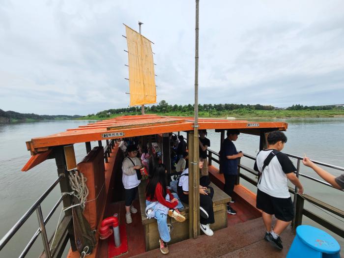 학생들은 황포돛배에 올라 미니 망원경으로 괭이갈매기 등 조류를 관찰하고, 임진강 습지와 수변에 서식하는 다양한 동식물을 살펴보았다. 또, 직접 제작한 마이크로비트 미세먼지 측정기를 활용해 대기환경을 확인하며 환경 변화에 대한 이해를 넓혔다. 황포돛배 선장은 호로고루성과 북한 지형, 임진강의 옛 이야기와 함께 “과거 우리 마을에 화신 백화점이 있었다”는 특별한 지역사를 들려주며 학생들의 흥미를 끌었다.