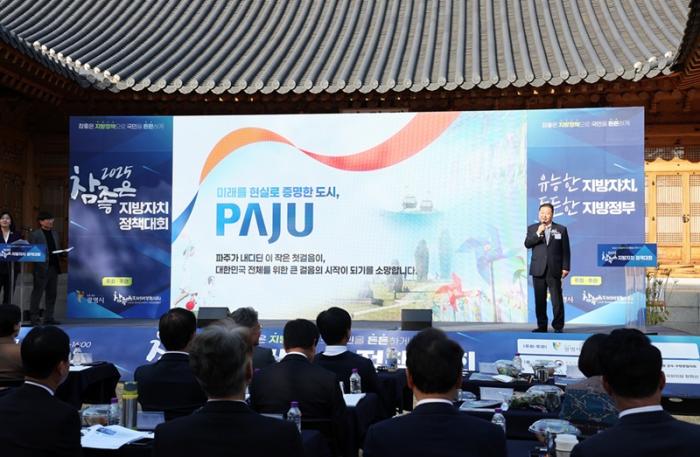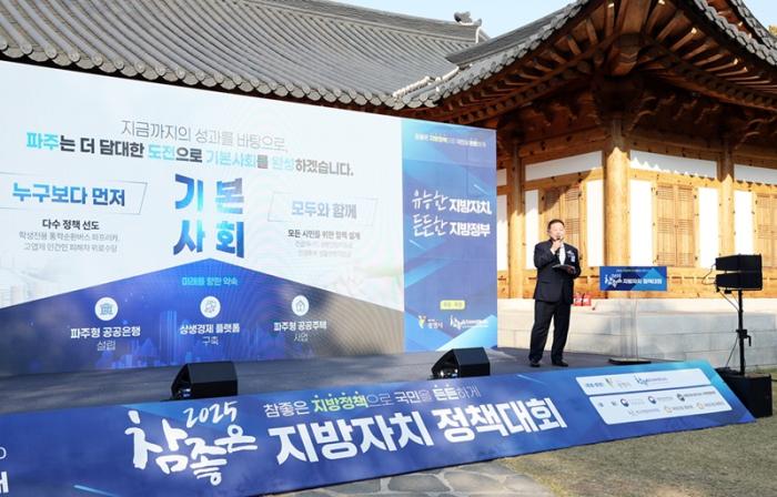 파주시는 지난 7일 국회 사랑재에서 열린 ‘2025 참좋은 지방자치 정책대회’에서 김경일 시장이 ‘기본사회 선도도시 파주’를 주제로 우수사례를 발표해 행정안전부장관상을 수상했다고 밝혔다.