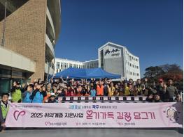 이번 행사는 파주시자원봉사센터가 경기도자원봉사센터의 ‘2025 취약계층 지원 사업’의 김장 지원 자원봉사 공모에 선정되어 보조금 10,500천 원을 지원받아 실시했으며, ▲코오롱글로벌㈜스포렉스 ▲대한적십자사봉사회 파주시협의회 ▲어울림봉사단 ▲해병대파주시전우회 등 100여 명의 자원봉사자가 참여했다.