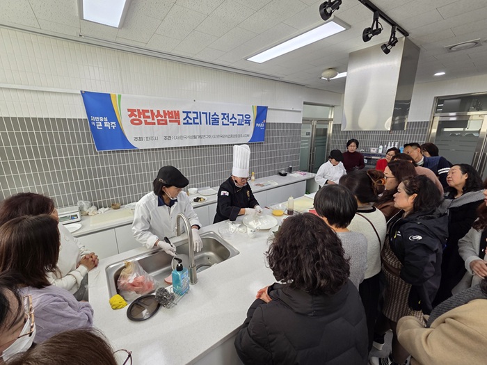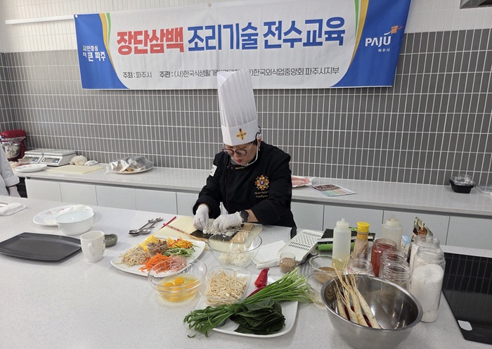 파주시는 지역 대표 특산물인 ‘장단삼백(장단콩, 파주개성인삼, 한수위쌀)’을 활용한 조리기술 전수 교육을 성공적으로 마무리했다고 밝혔다.