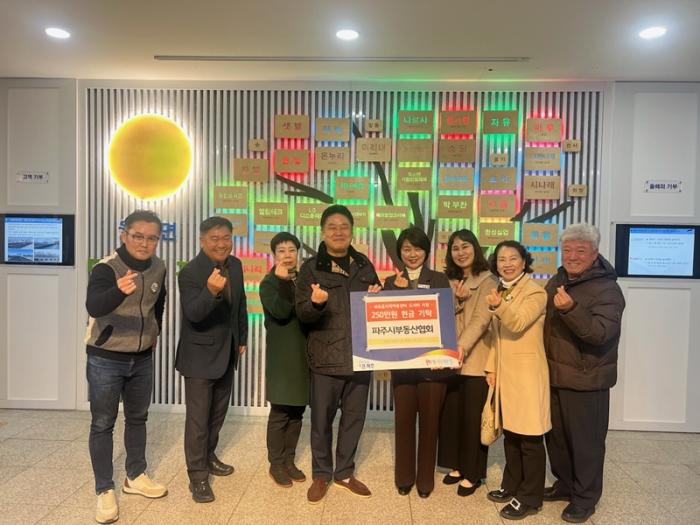 김영기 부동산과장은 “어렵고 힘든 시기에도 지역사회를 위해 매년 꾸준히 나눔 활동을 실천해 주시는 공인중개사협회 파주시지회에 깊은 감사를 드린다”라며 “정성을 담아 기탁된 기부금과 물품은 도움이 필요한 분들께 잘 전달하겠다“라고 밝혔다.