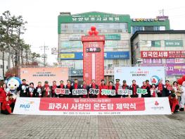 파주시는 지난 10일 금촌역 광장에서 사랑의 온도탑 100도시(℃)를 향한 힘찬 외침과 함께 ‘사랑의 온도탑’ 제막식을 개최했다고 밝혔다.