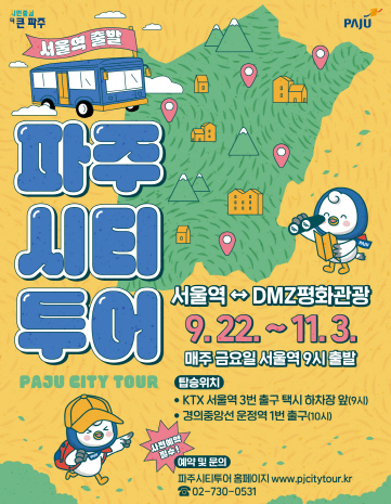 파주시는 서울역에서 출발하는 시티투어 특별노선을 9월 22일부터 11월 3일까지 매주 금요일 주 1회(총 6회, 추석 당일 휴무) 운행한다.